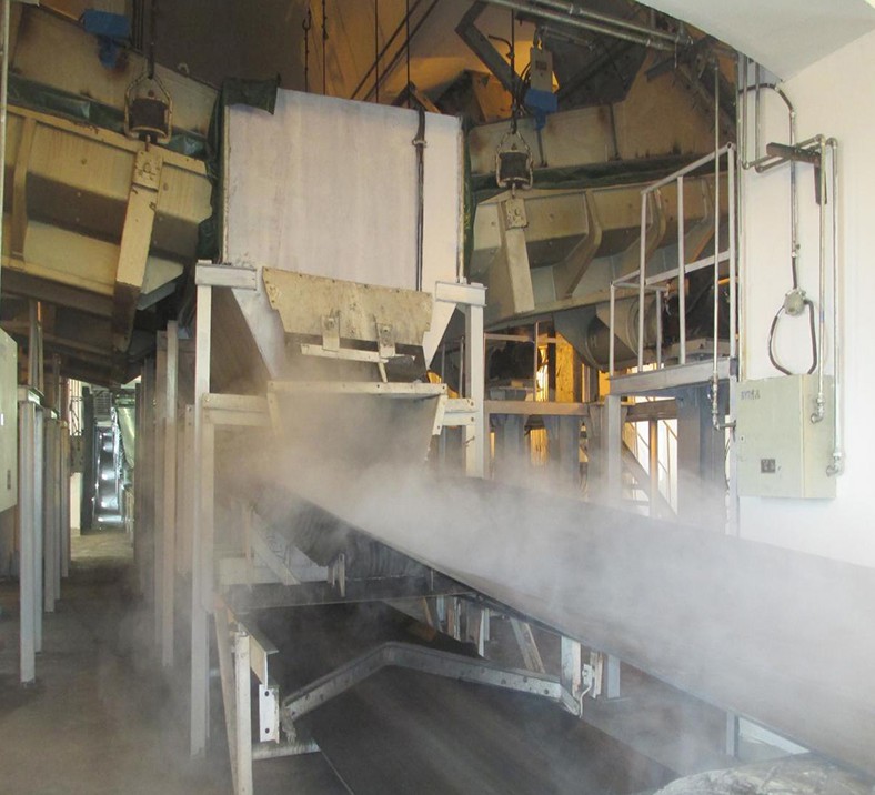 工业生产过程中大宗散状原燃料的输送系统,大部分采用的是火车翻车机翻卸或汽车翻车机翻卸,然后采取胶带输送机系统进行输送,在输送过程中产生很大的粉尘污染,对正常的生产和生活造成极大的影响。