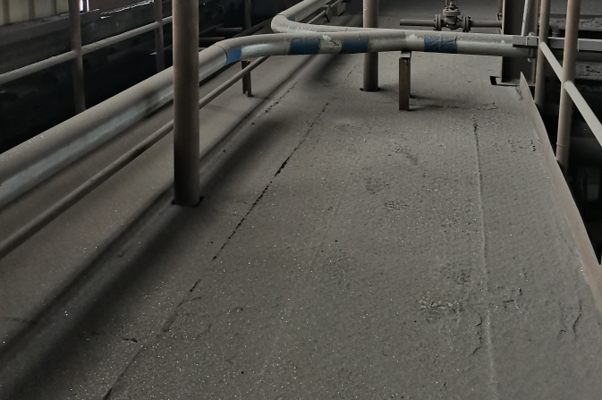 我们去的刚好不算巧,他们车间在我们来的前几天刚清理了车间每层的粉尘,没能拍到我们的真空清扫系统工作的视频和图片,但是即使才清理三四天左右,在扎炼厂的车间里每一层我都能感受到粉尘量是有多大,带着口罩进去,尤其到了第四层的时候烟气外散时,能感觉自己呼吸的空气都是混浊的,地面和设备上,管道叽哩嘎啦角落已经积了一层粉尘,有的迎光看都是亮晶晶的。